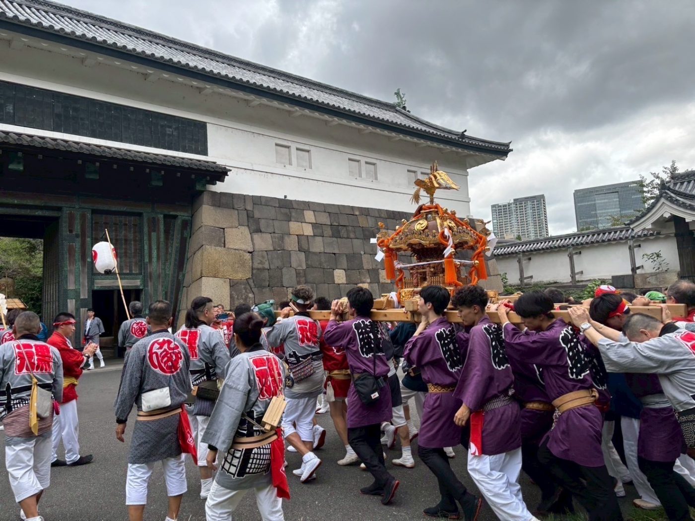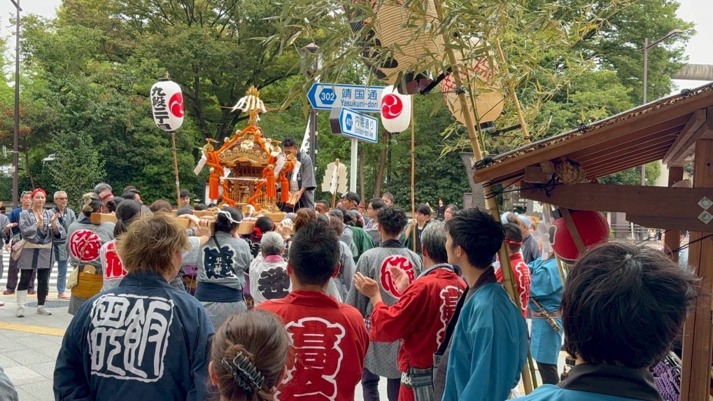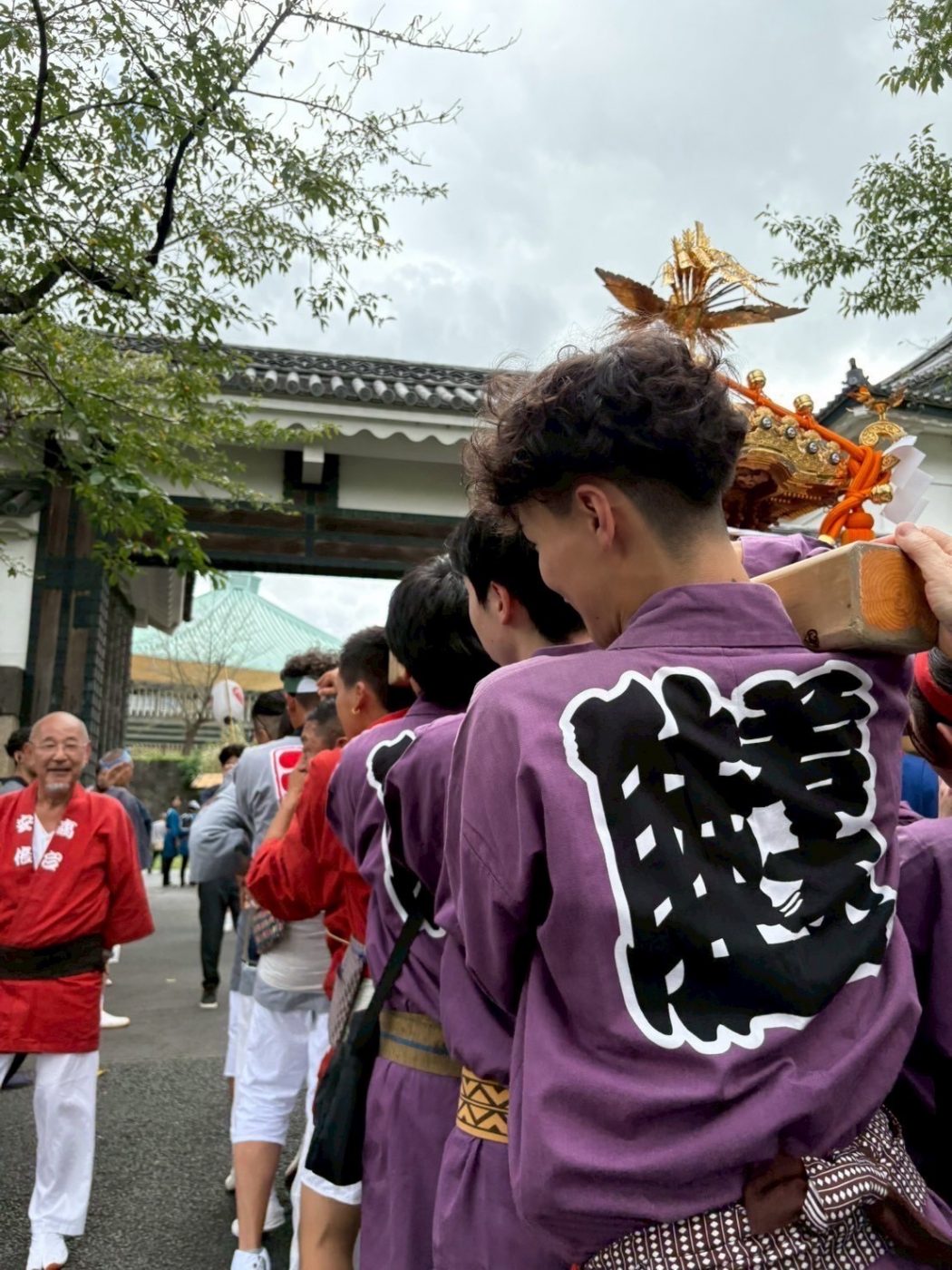 神幸祭では、神輿と共に神幸行列が氏子地域である九段下や田安門を巡行しました。