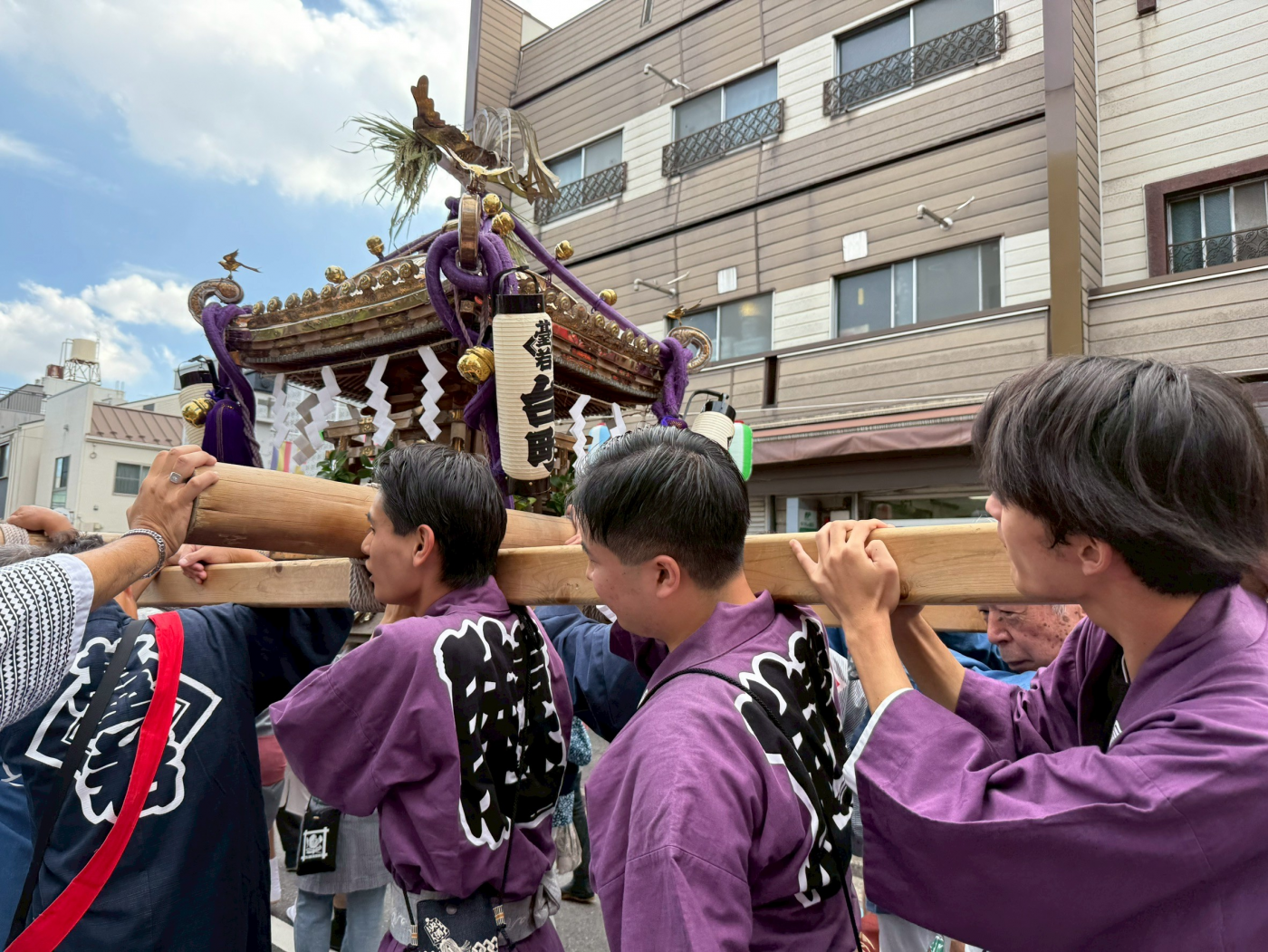 ヨコタ担ぎとは、「ヨコタでおいでおいちにのさん」という掛け声の後に神輿を思いきり横に振る担ぎ方です。この時に、添え棒に入っている人はジャンプする程です。