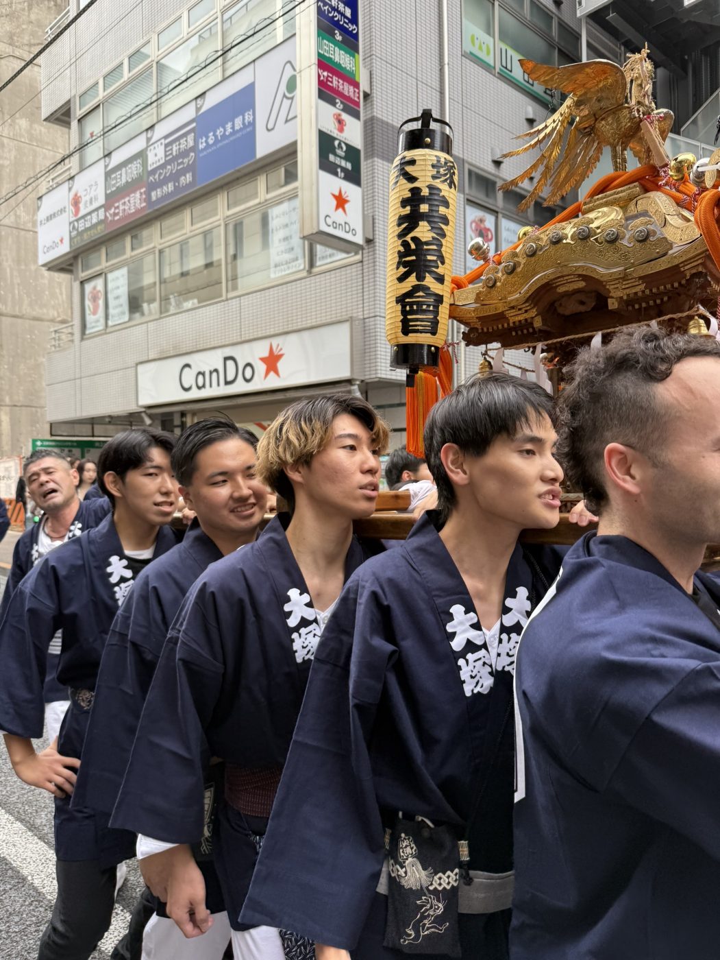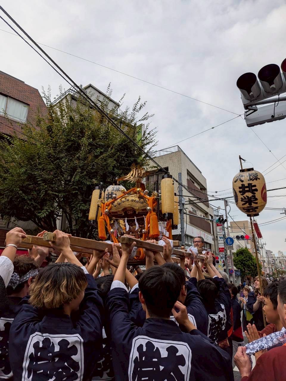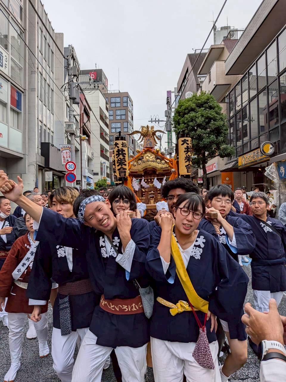大人神輿は町会の方だけでなく、テンプル大学や駒澤大学の学生の皆様も参加しており、とてもにぎやかな渡御となりました。