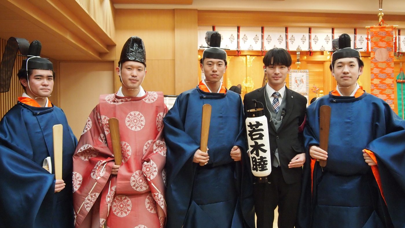 若木睦は斎庭係として奉仕し、受付や設営などを担当しました。また、新成人として本会からも数名が参列し、それぞれが晴れやかな表情で式に臨んでいました。