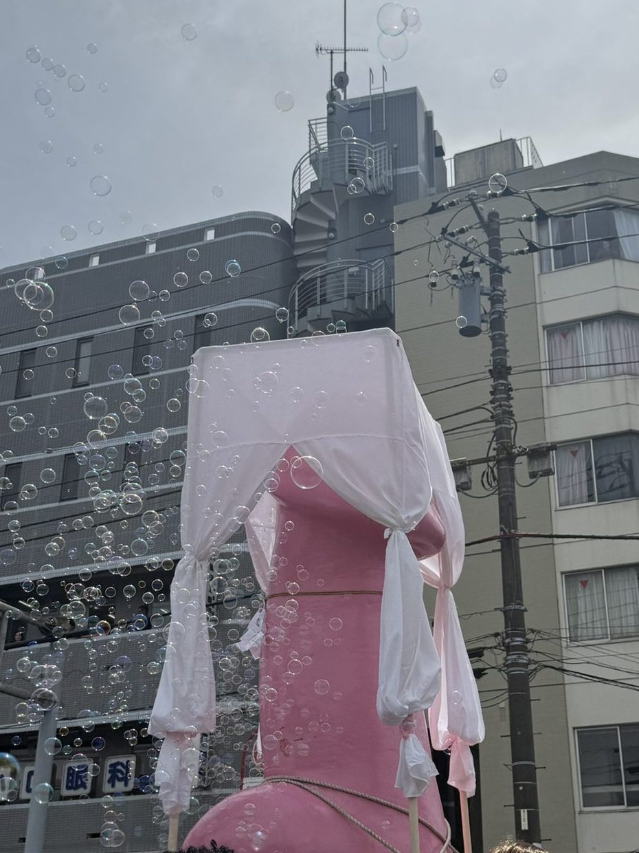 第50回という節目を迎えた本年もその熱狂は変わることなく続いていました。沿道からは絶え間ない歓声が上がり、空を舞うシャボン玉が神輿を彩っていました。